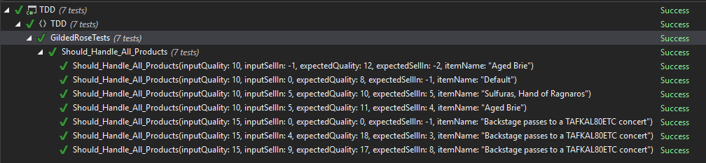 public void Should_Handle_All_Products(int inputQuality, int inputSellIn, int expectedQuality, int expectedSellIn, string itemName)